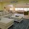 Bedroom 3 (suite): This is actually a studio apartment with an open bedroom/sitting area with a bonus pull-out sofa, smart TV, bathroom & kitchen. These are great quarters for the parents/in-laws in the group or for the kids to pile in - this suite has everything one needs. This bedroom also has its own rear building exit and driveway and easy access to the backyard and pool through the fence gate, so you may want to put people in here who don't mind family traffic to the pool.